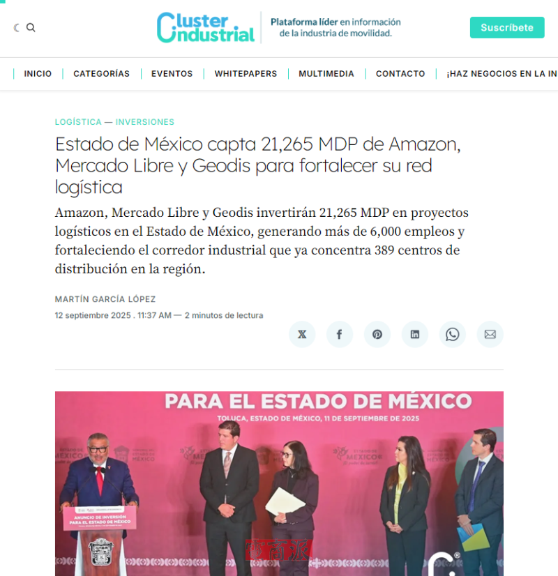 9月18日消息,根據墨西哥州政府公布的計劃,亞馬遜、美客多與法國物流公司Geodis將在墨西哥州投資超過210億比索(約12億美元),用于擴展物流基礎設施、建設新中心并創造數千個就業機會。這些投資項目將覆蓋勒爾馬、圖爾特佩克和圖爾蒂特蘭地區,進一步強化墨西哥州作為物流樞紐的地位,提升電商與供應鏈運營的競爭力。