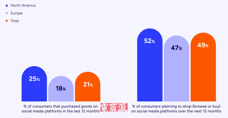 而從Metapack發布的《2025年電商配送基準報告》顯示,上一年全球就已經有約21%的購物者通過TikTok和Instagram等社交平臺直接購物,預計今年會有近半數(49%)的全球消費者將通過社交媒體平臺瀏覽或購買產品,其中北美的比例高達52%