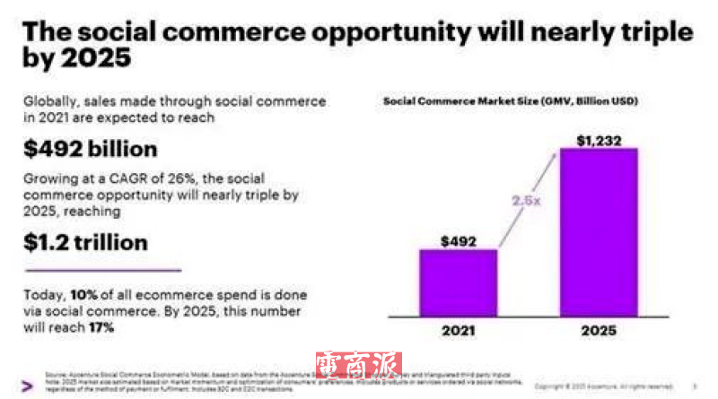 據Accenture研究發現,目前全球社交電子商務的增長速度是傳統電子商務的三倍,預計到2025年,全球社交電商市場規模將達到1.2萬億美元,這一數據直觀地反映出社交電商的蓬勃發展態勢。