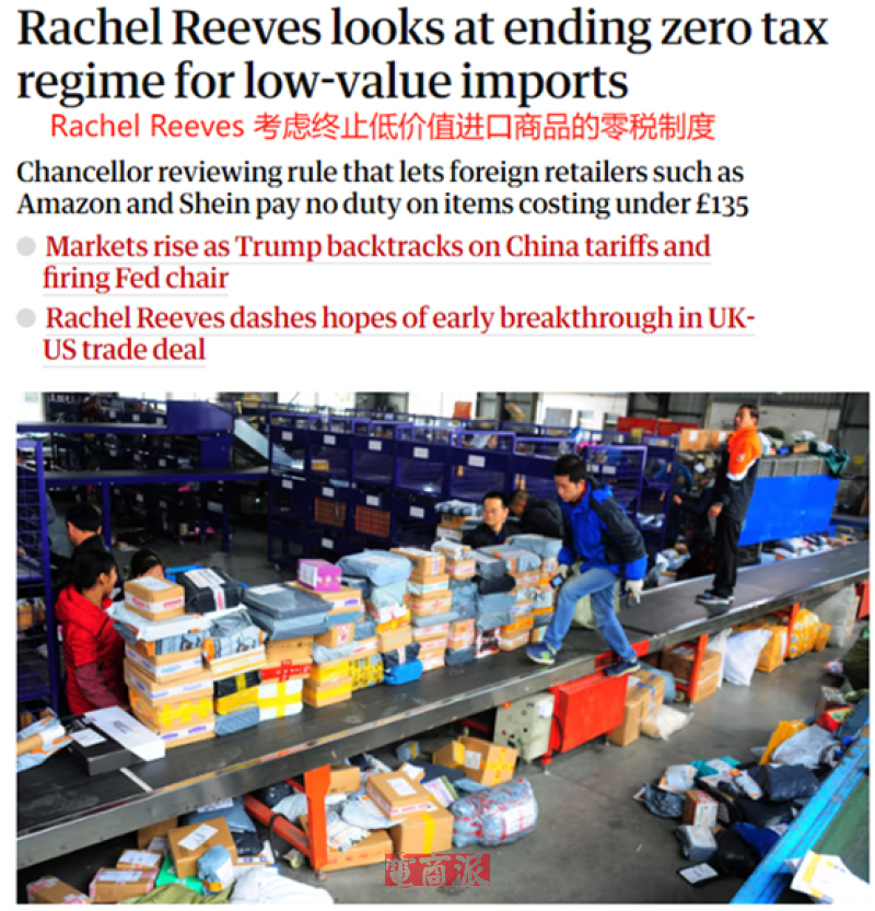 不久前,英國財政大臣Rachel Reeves(雷切爾·里夫斯)就透露稱,由于接到許多本土零售商的投訴,相關(guān)部門將對低價值商品進口稅收制度展開審查,旨在遏制“通過線上平臺銷售廉價商品削弱英國零售商競爭力”的現(xiàn)象。這也意味著,英國針對價值低于135英鎊的進口商品免稅政策有概率面臨歷史性調(diào)整。