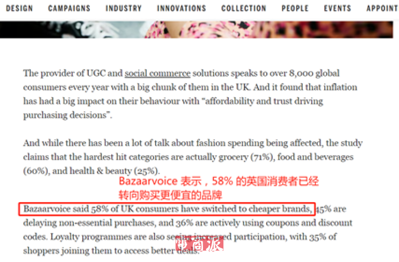 在全球經(jīng)濟下行的大背景下,英國生活成本持續(xù)上升,勒緊褲腰帶過日子的消費者們不得不重新審視自己的消費需求。根據(jù)Bazaarvoice此前發(fā)布的年度購物者偏好數(shù)據(jù),高達58%的英國消費者因通脹影響轉(zhuǎn)向購買低價品牌,另有57%的消費者選擇永久購買自有品牌產(chǎn)品,因為這類商品的價格往往更低。
