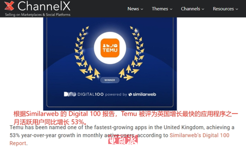 Temu成為英國增長第二快的應(yīng)用 圖源:channelx