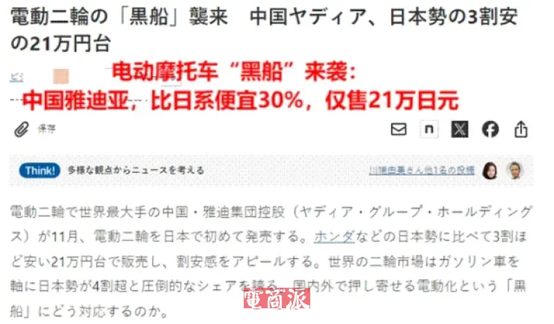 雅迪將進(jìn)入日本市場(chǎng) 圖源:nikkei