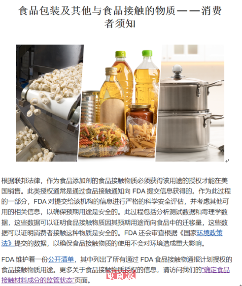 美國對食品接觸產品監管嚴格 圖源:fda