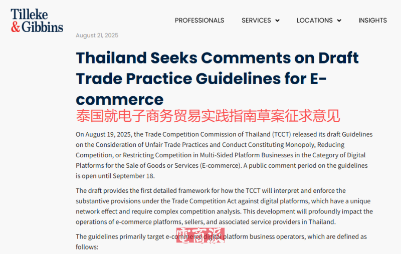 TCCT發(fā)布草案征求意見 圖源:tilleke