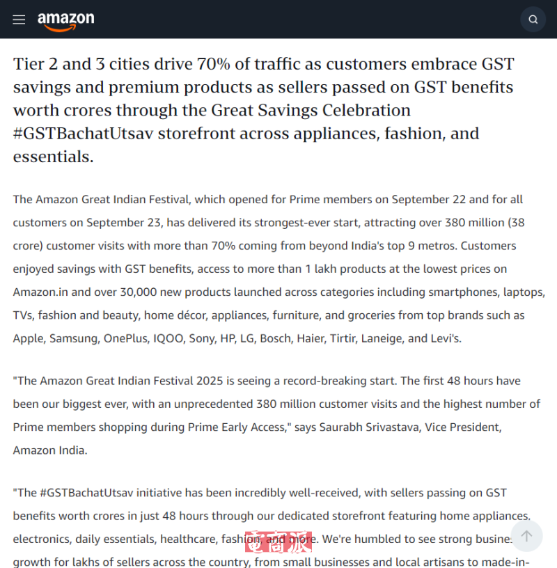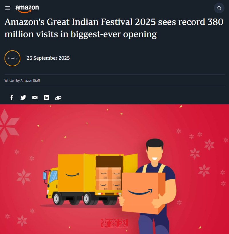 亞馬遜印度大促創(chuàng)紀(jì)錄 前48小時(shí)訪問量突破3.8億