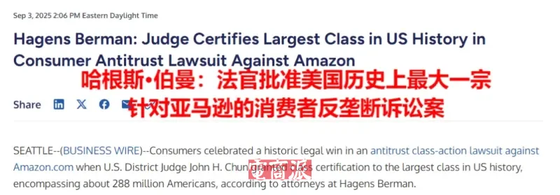 亞馬遜遭遇集體訴訟?圖源:business wire