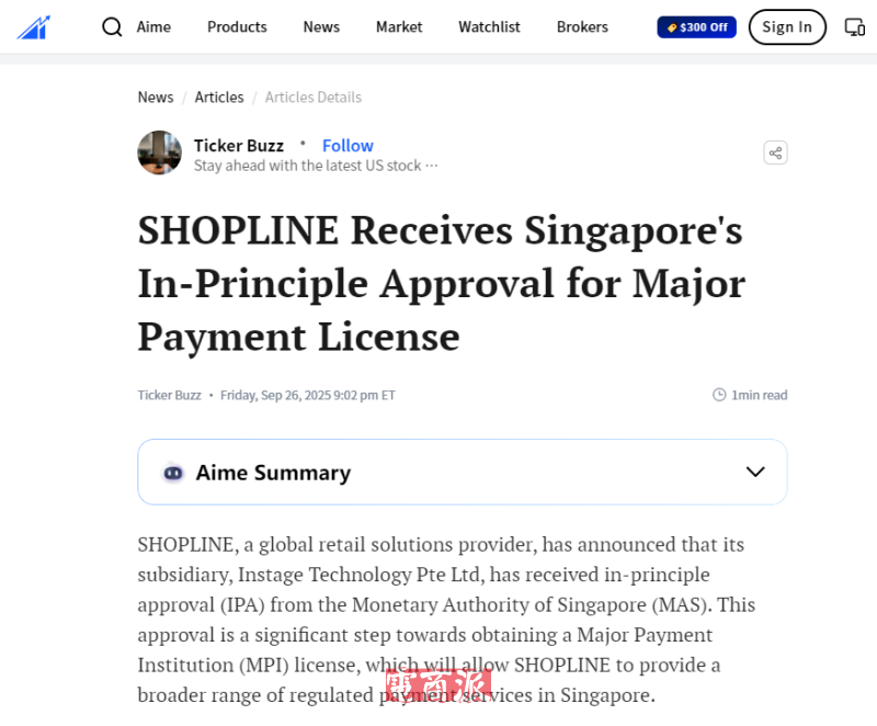 9月27日消息,全球跨境電商建站解決方案服務商SHOPLINE日前宣布,子公司Instage Technology Pte Ltd已獲得新加坡金融管理局(MAS)授予的原則性批準,有望取得主要支付機構(MPI)牌照。若最終獲批,SHOPLINE將可在新加坡提供五項受監管支付服務,包括賬戶開設、本地及跨境匯款、商戶拓展以及電子貨幣發行。