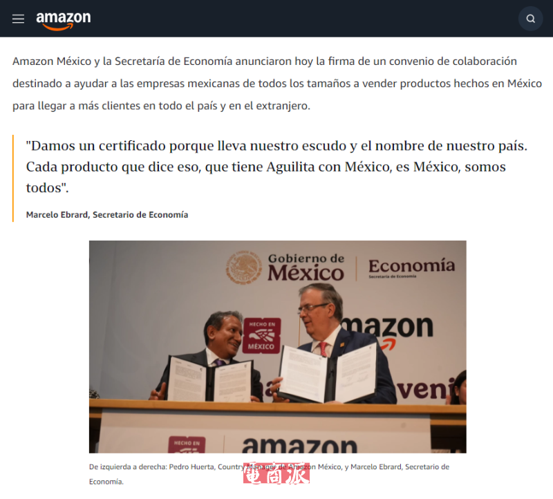 目前,消費者已能在亞馬遜平臺上識別帶有“墨西哥制造”標(biāo)識的商品,涉及超過8萬種產(chǎn)品,均由墨西哥企業(yè)與制造商生產(chǎn)。該合作將為墨西哥生產(chǎn)者提供更多亞馬遜數(shù)字化工具,包括物流服務(wù)、咨詢項目和配送解決方案,以支持其在國內(nèi)外市場拓展銷售。