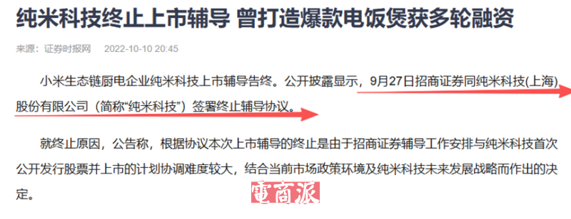 具體來說,早在2019年,純米科技就透露出IPO計劃。2021年年底,公司與招商證券簽署了上市輔導協議,首次向主板上市發起沖鋒,然而10個月短暫等待后,由于輔導工作協調難度和市場環境變化,純米科技撤回了輔導備案。