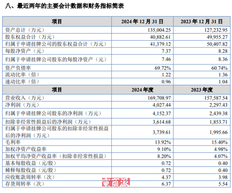 得益于“小米生態鏈+自主品牌”的雙輪驅動,純米科技業績持續飆升,公開轉讓說明書顯示,2023年-2024年期間,純米科技分別實現年營收15.76億元、16.97億元;凈利潤為2297萬元、4027萬元。