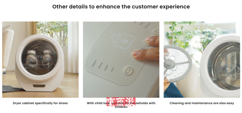實際上不止于國內,在海外很多市場也有這方面的需求,例如北美房車數量眾多,一款便攜式體積小巧的烘干機能幫他們解決雨天衣物晾曬問題;而在日本,窄小的居住面積讓他們生活空間顯得十分寶貴,傳統大體積的烘干機也不適合他們。
