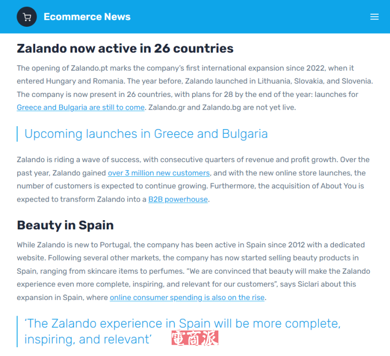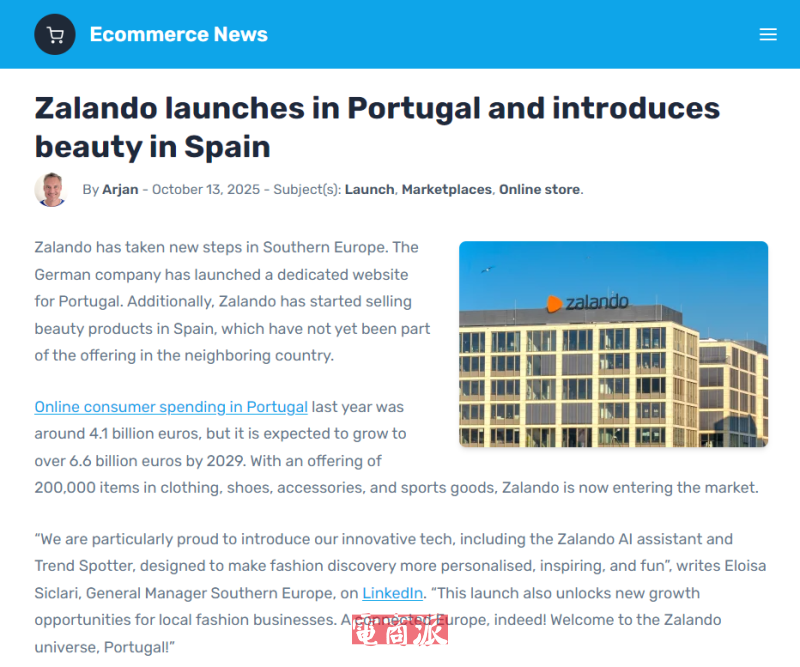 10月14日消息,德國時尚電商平臺Zalando正加速在南歐擴張,正式進入葡萄牙市場,開設新網站Zalando.pt,并在西班牙推出美妝品類。這是Zalando自2022年以來首次海外擴張。2022年Zalando進入了匈牙利和羅馬尼亞市場,2021年則拓展至立陶宛、斯洛伐克和斯洛文尼亞。目前,Zalando已活躍于26個國家,并計劃在年底前將業務擴展至28個市場,正準備拓展的市場是希臘和保加利亞。