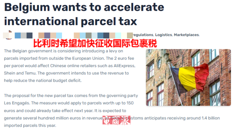近日,有媒體消息稱,比利時政府正考慮調整跨境稅收政策,對從歐盟以外地區進口的包裹征收2歐元稅款,預計該條款將在2026年實施。