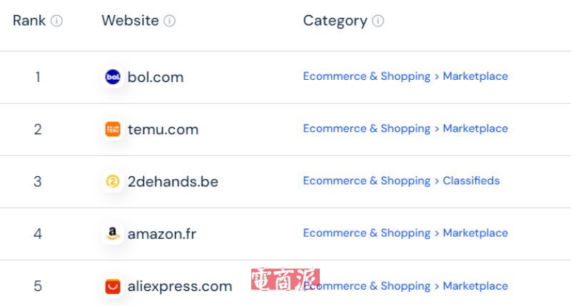 另一方面,隨著跨境網購平臺深入發展,其在市場中也逐漸占據優勢地位。據網站分析平臺SimilarWeb的數據,目前在比利時,跨境網購平臺已經占據重要份額。其中,隸屬歐盟以外地區,亞馬遜、Temu及速賣通,均是訪問量前五的網購平臺。