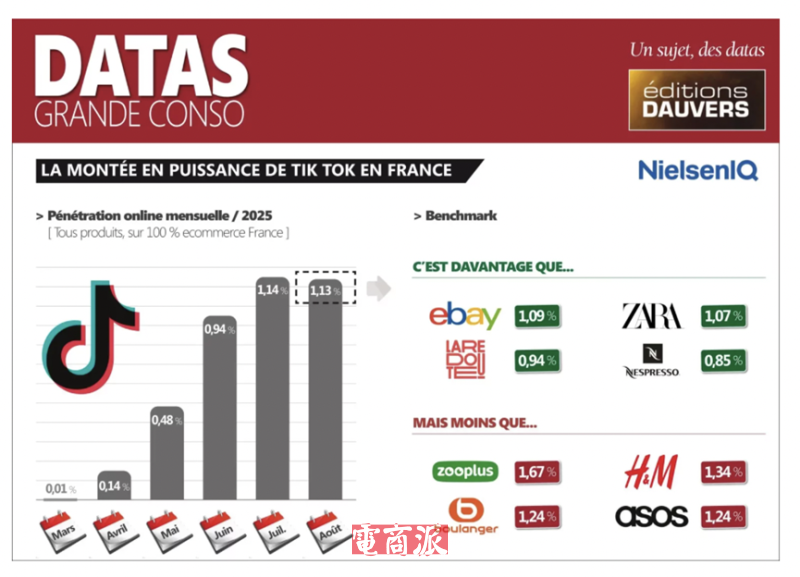 TikTok Shop法國市場份額達1.13%圖源:NielsenIQ