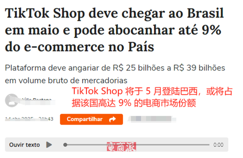TikTok Shop將占據巴西9%的電商市場份額 圖源:terra
