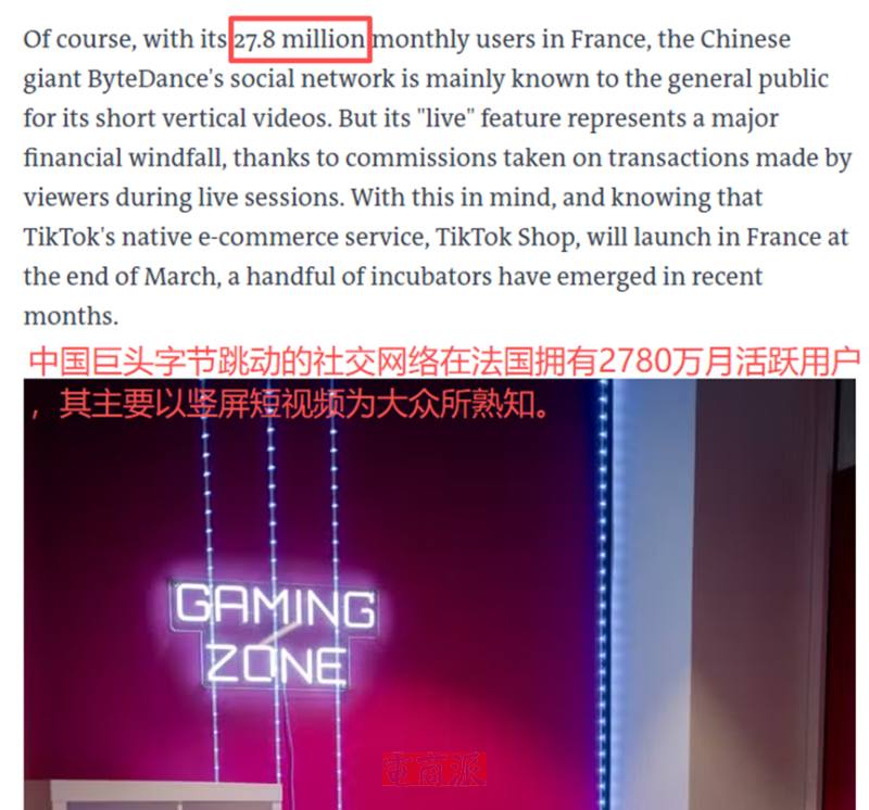 早在TikTok Shop法國站推出前,TikTok平臺就在該市場積累起約2780萬用戶,為后面電商業務的發展打下了堅實基礎。