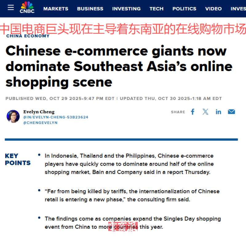 日前,貝恩咨詢公司(Bain and Company)發布了一份報告,報告指出,盡管目前國際貿易形勢緊張,但中國零售業不僅沒有被關稅扼殺,反而國際化進入了新階段,在印尼、泰國和菲律賓等國,中國平臺已占據當地電商約50%市場份額。