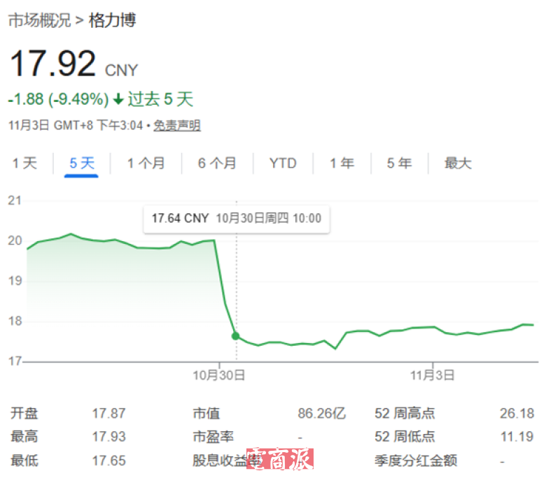 收入下滑,利潤轉虧上億,現金流惡化……第三季度財報發出后,格力博當日股價應聲大跌超12%,跌幅居市場首位。