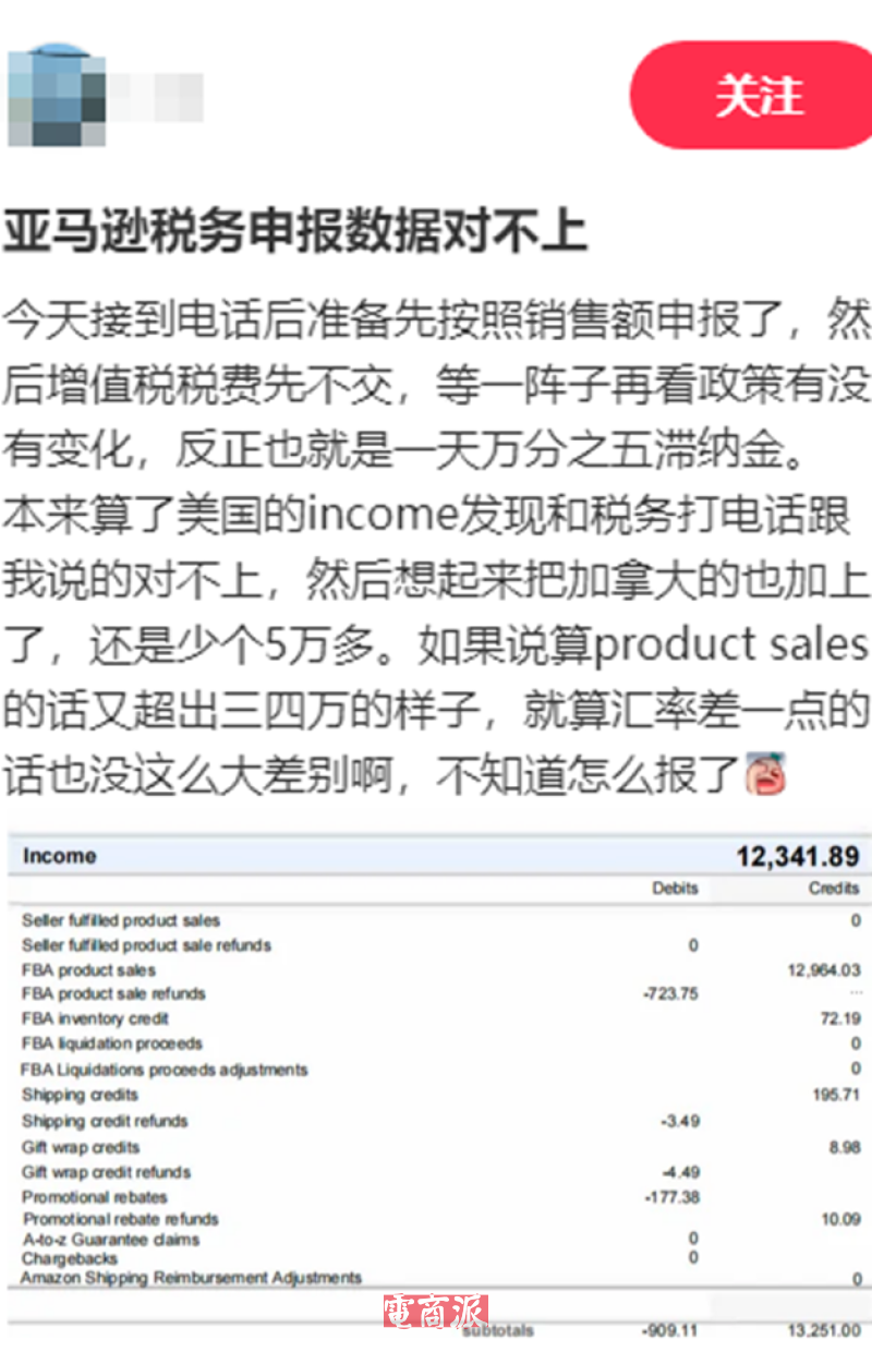 亞馬遜賣家發現稅務申報數據對不上 圖源:小紅書
