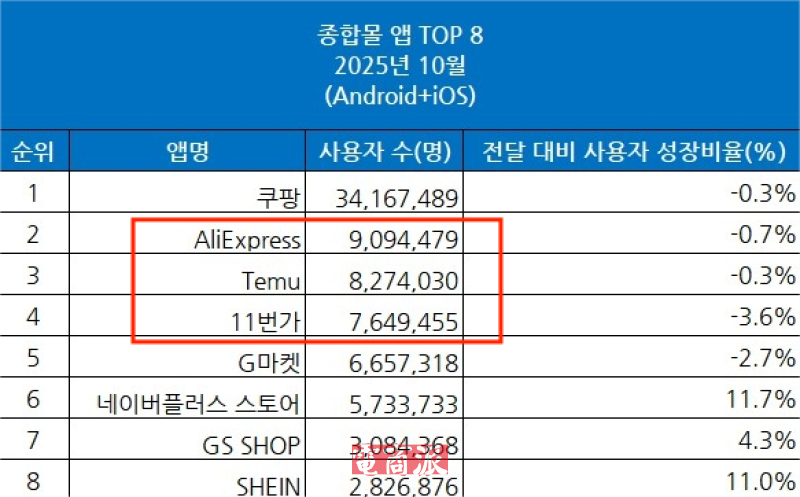 跨境電商平臺進入韓國網購應用榜前十?圖源:WiseApp Retail