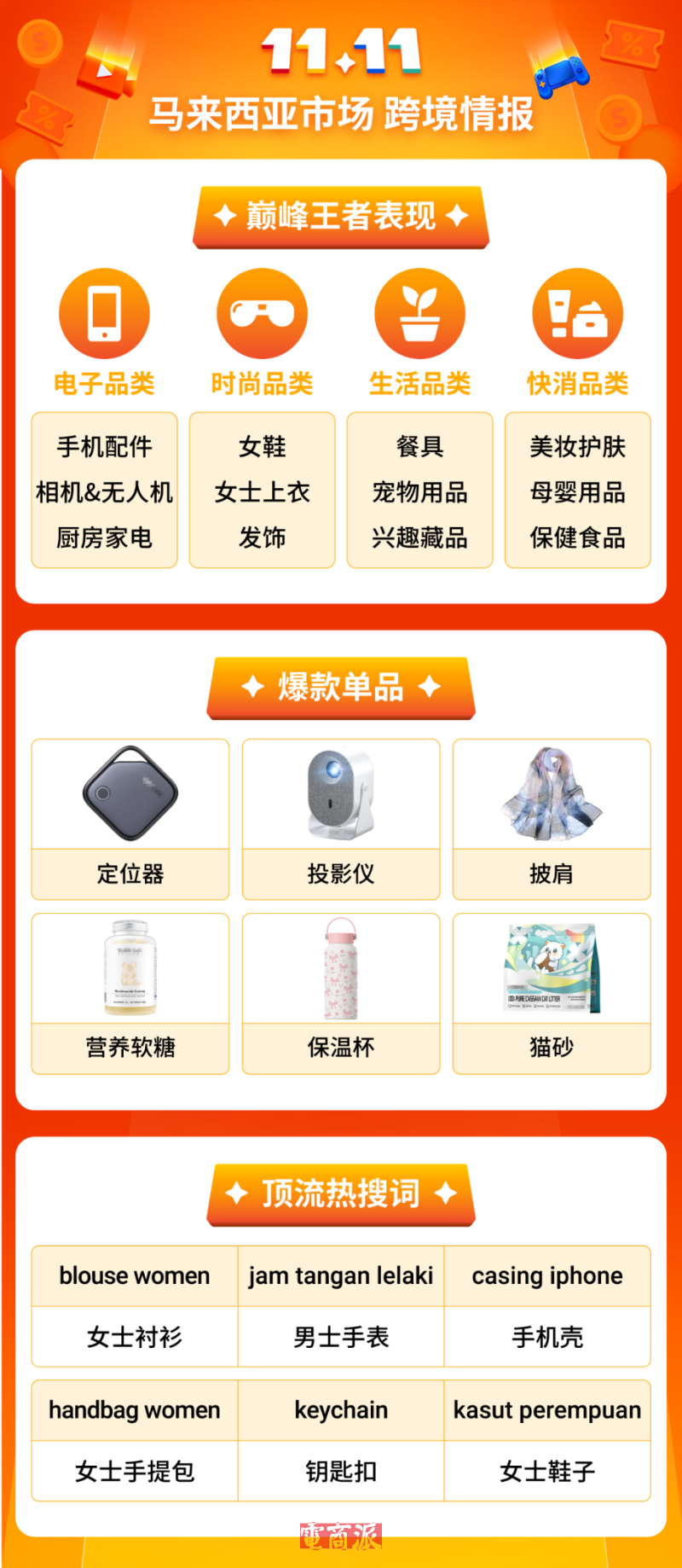 在剛剛結束的雙11大促,Shopee馬來西亞再度創下銷售新記錄,電子產品、時尚、生活、快消成為四大熱銷品類。京東全球售面向海外華人群體,今年雙11也在馬來西亞實現成交額與訂單量的100%同比增長。