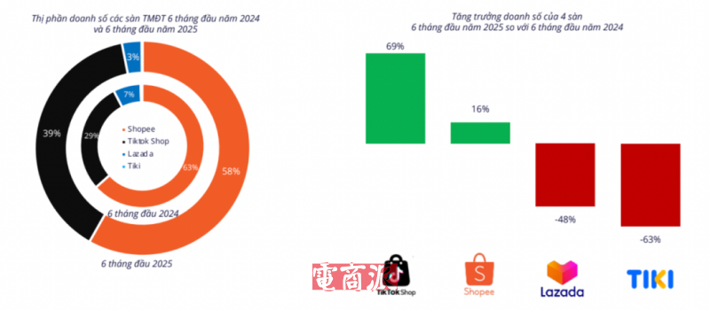 同為東南亞國家,越南就是一個典型例子。來自咨詢公司Metric的報告即揭露這一趨勢,其指出,今年上半年,越南市場競爭越發(fā)白熱化,頭部平臺Shopee、TikTok Shop依然保持快速增長,市場份額持續(xù)擴大;Lazada、Tiki則面臨份額萎縮、競爭力下滑的困局。而在賣家層面,能出單的店鋪數(shù)量大幅減少,有超過8萬家網(wǎng)店因沒有訂單被迫關(guān)店。