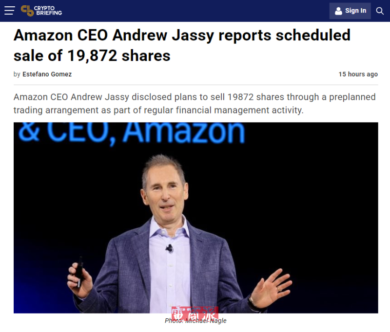 11月22日消息,亞馬遜向美國證券交易委員會(SEC)提交的144表格顯示,亞馬遜CEO安迪·賈西(Andy Jassy)計劃出售19,872股公司普通股,總價值大約429.92萬美元,出售日期為2025年11月21日左右。2021年,亞馬遜創(chuàng)始人貝索斯正式辭去CEO一職,由亞馬遜云業(yè)務(wù)AWS首席執(zhí)行官安迪·賈西接任至今。