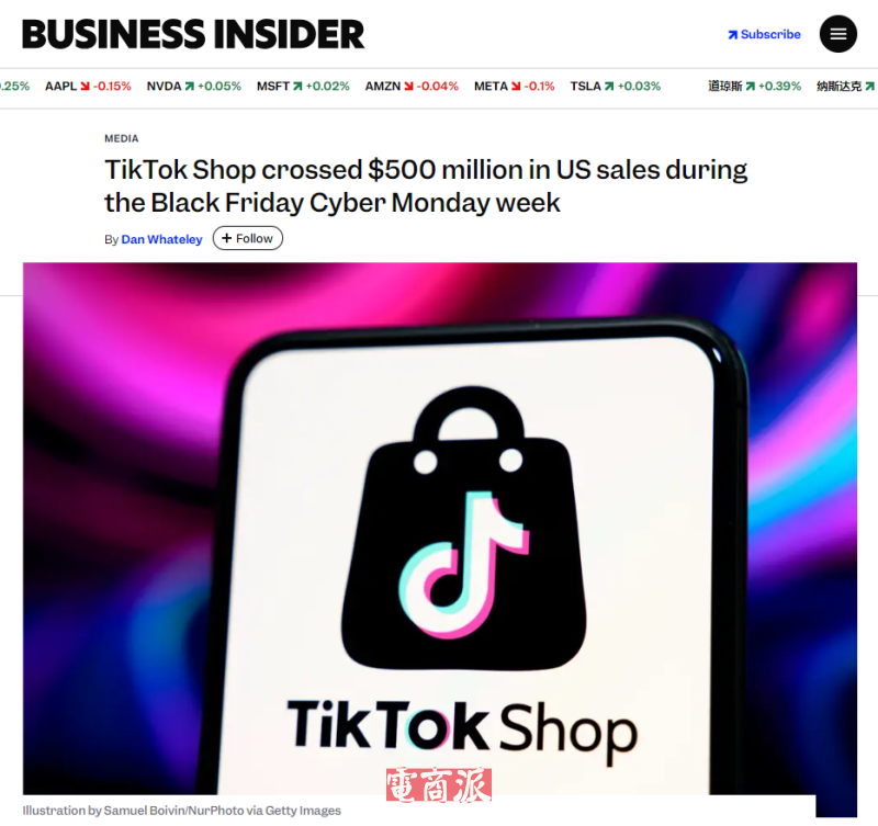 12月3日消息,TikTok Shop表示,今年“黑五網一(BFCM)”期間,TikTok Shop美國站的商品交易總額(GMV)突破了5億美元。與去年同期相比,本次大促期間在TikTok Shop美國站下單并完成購買的用戶數量增長近50%。據第三方調研機構eMarketer估算,TikTok Shop今年在美國的銷售額有望達到約158億美元。