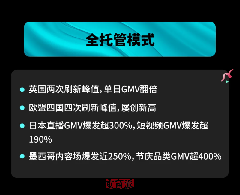 在全托管模式方面,TikTok Shop英國市場兩度刷新歷史峰值,單日GMV成功實現翻倍;歐盟四國在大促期間累計四次創下新高。亞洲市場方面,日本直播帶貨場景爆發力更為突出,直播GMV增長超過300%,短視頻帶貨GMV提升逾190%。拉美市場亦展現出強勁增長勢頭。墨西哥GMV躍升近250%,其中節慶類目增長最為突出,GMV增幅超過400%,顯示當地消費者在年底購物季中對節慶、禮品類商品需求旺盛。