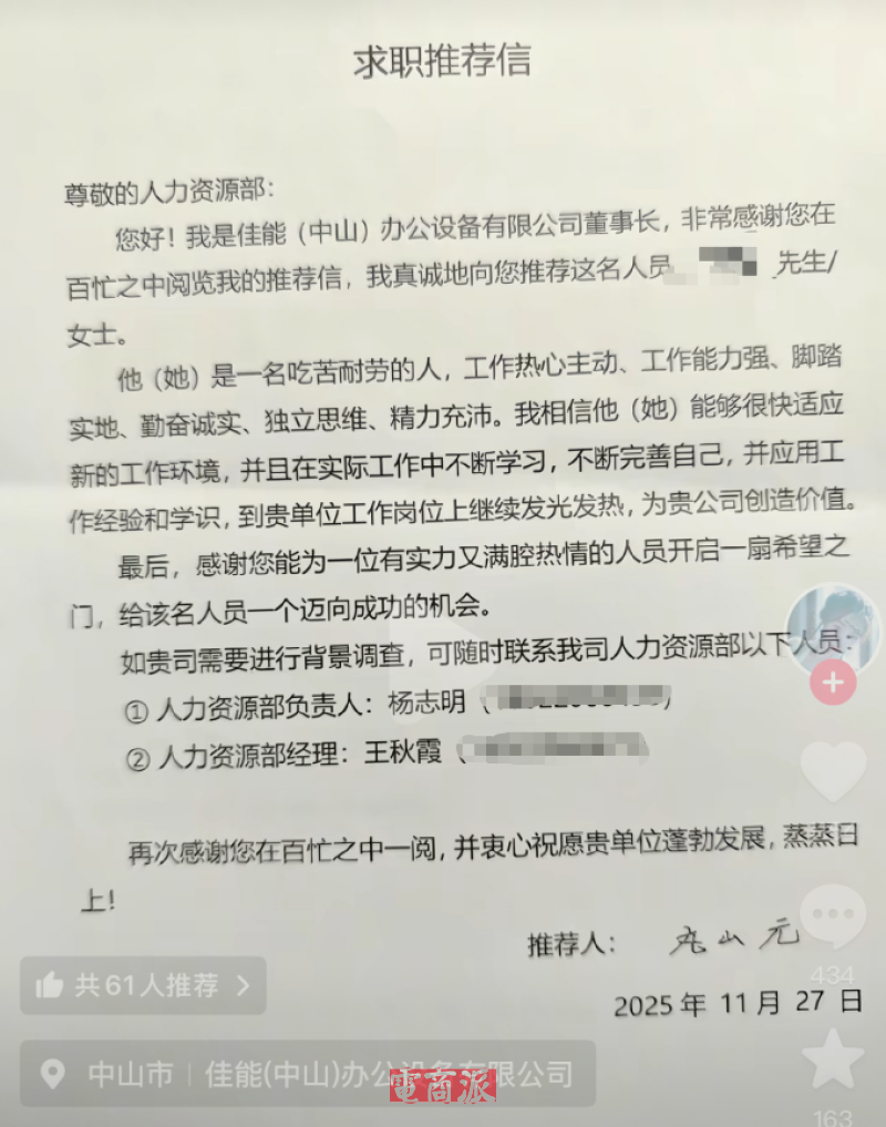 網(wǎng)傳求職推薦信?圖源:抖音